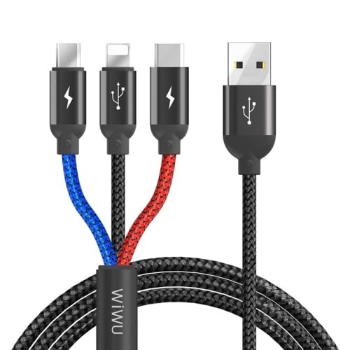 Chargeur Telephone ATOM 3-en-1 à charge rapide 3A Lightning, type C, câble USB WIWU YZ-102